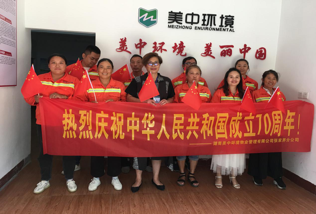 9月28日上午,湖南美中环境物业管理有限公司张家界分司为庆祝新中国成立70周年,组织全体员工举办“歌唱祖国,共筑梦想”活动,全体员工齐唱《我和我的祖国》现场气氛热烈高涨。