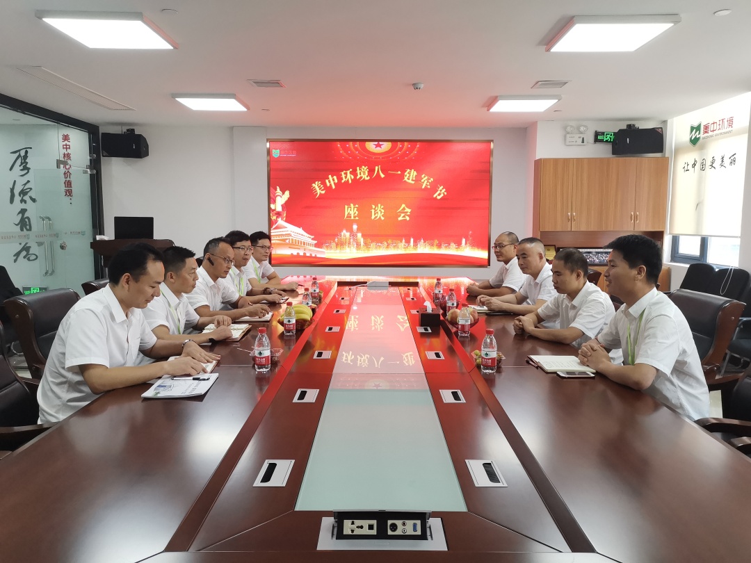 为庆祝中国人民解放军建军93周年,做好退役军人慰问和组织关怀工作,7月31日上午,湖南美中环境生态科技有限公司组织召开退役军人座谈会,来自总部各部门的退役军人代表参加了座谈会。