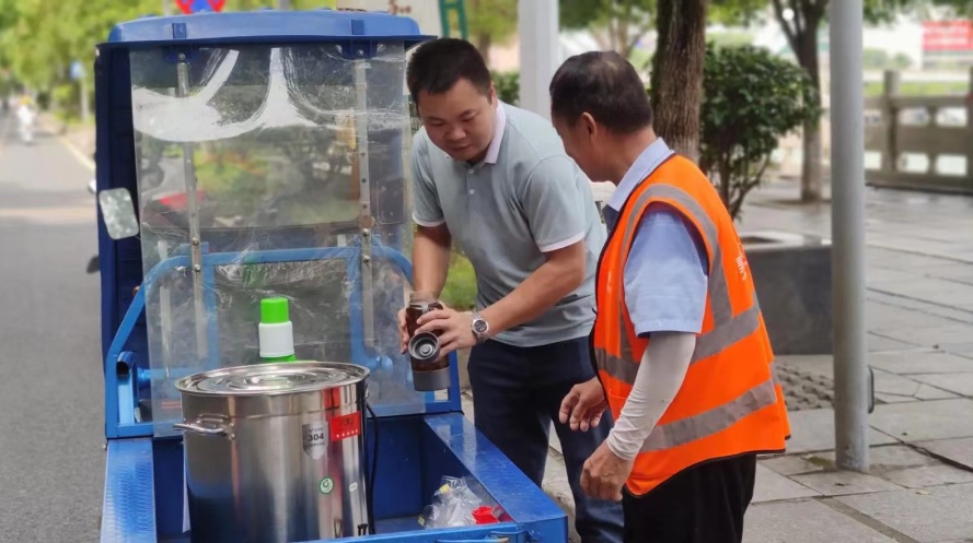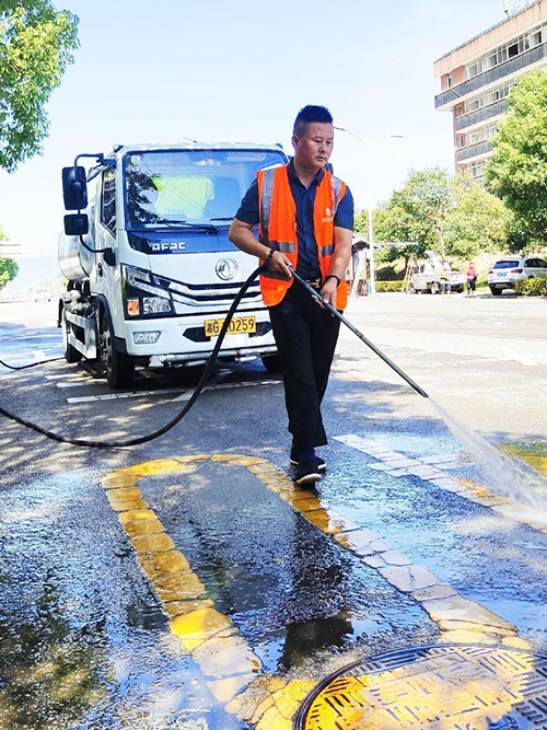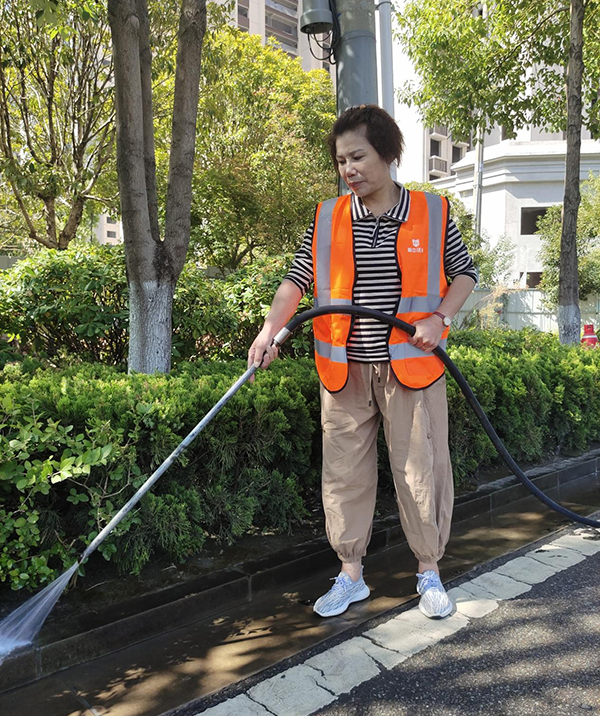 项目经理罗燕妮和副经理欧明星,每天带领团队对项目所辖区域进行彻底整理整治,对街道、人行道的卫生死角,暴露垃圾、建筑渣土、街道两旁可视范围内有碍观瞻的废旧物品、公交站台的护栏、座椅和电子站牌,地下通道等城市公共设施进行全面的冲洗、擦拭、清扫。